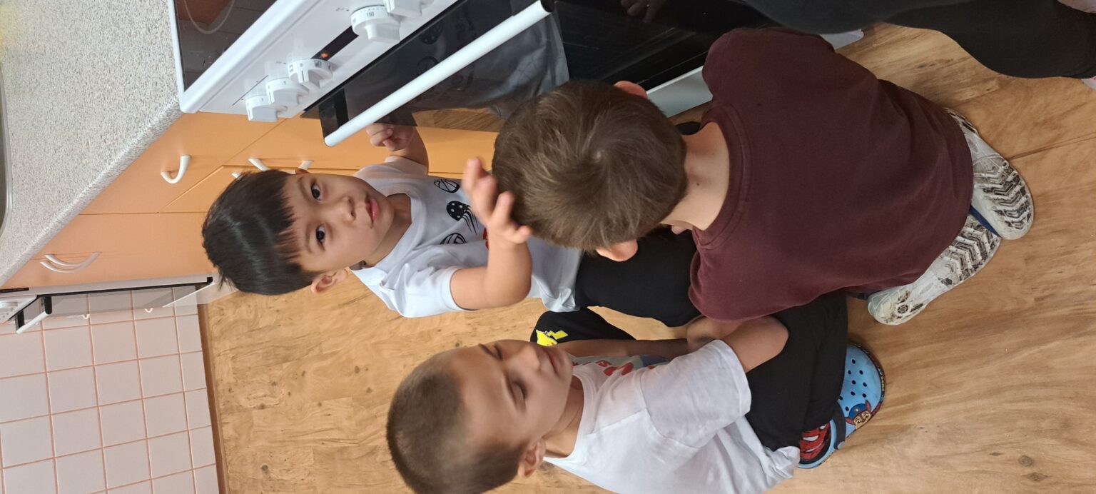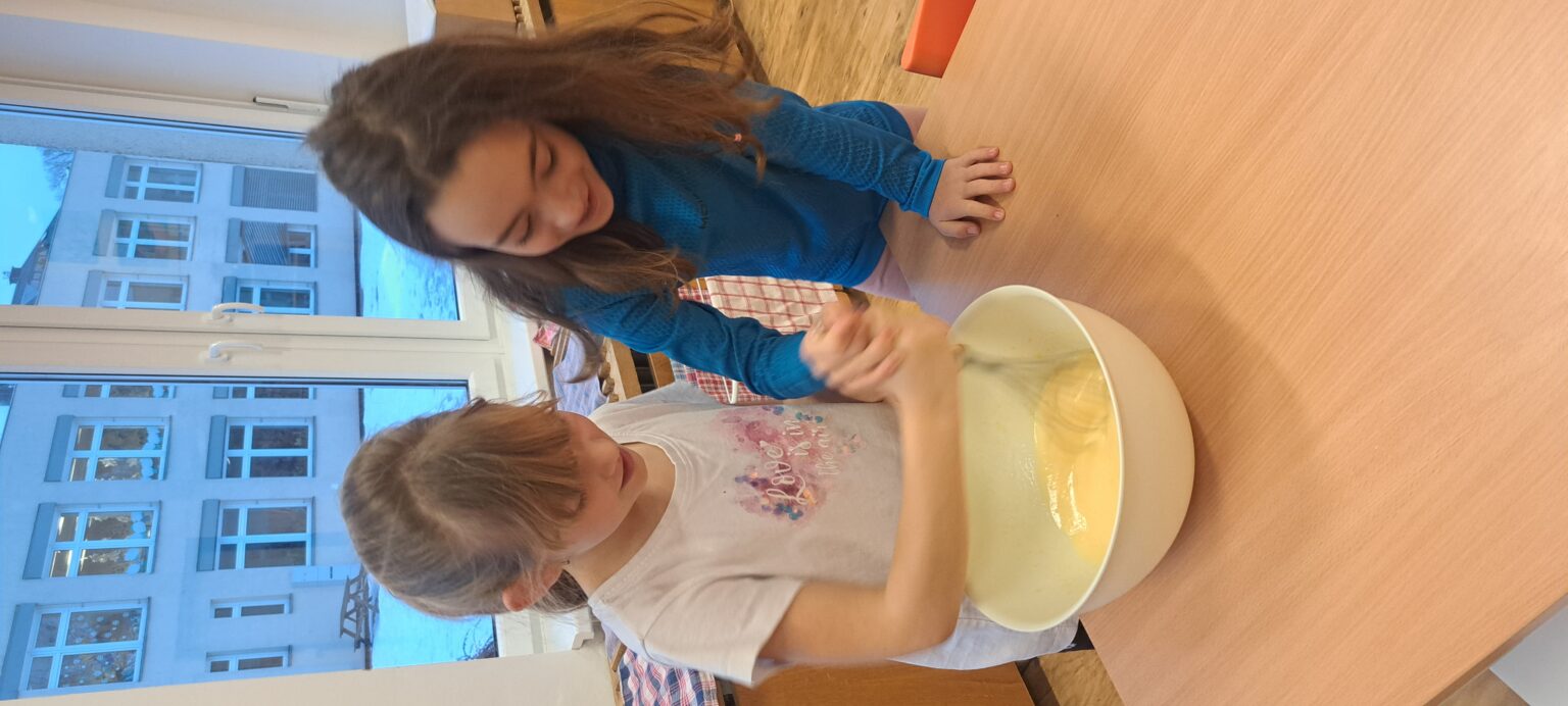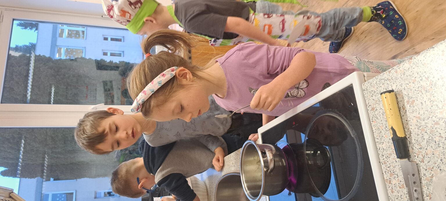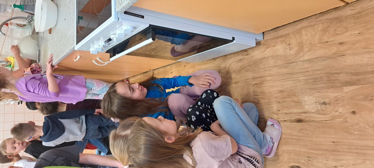 Žáci ze 2. A si v pátek vyzkoušeli přenést teoretický výsledek slovní úlohy z matematiky do výsledku praktického. Během přípravy na násobilku řešili recept na jablkový koláč. Jeho ingredience museli postupně přepočítávat na více porcí. Od toho už byl jen krůček k ověření, zda recept funguje. Proto jsme se přesunuli do cvičné kuchyně, rozdělili se do dvou týmů a mohlo se začít. A výsledek? Ze dvou plechů koláče nezbyl ani jeden kousek!