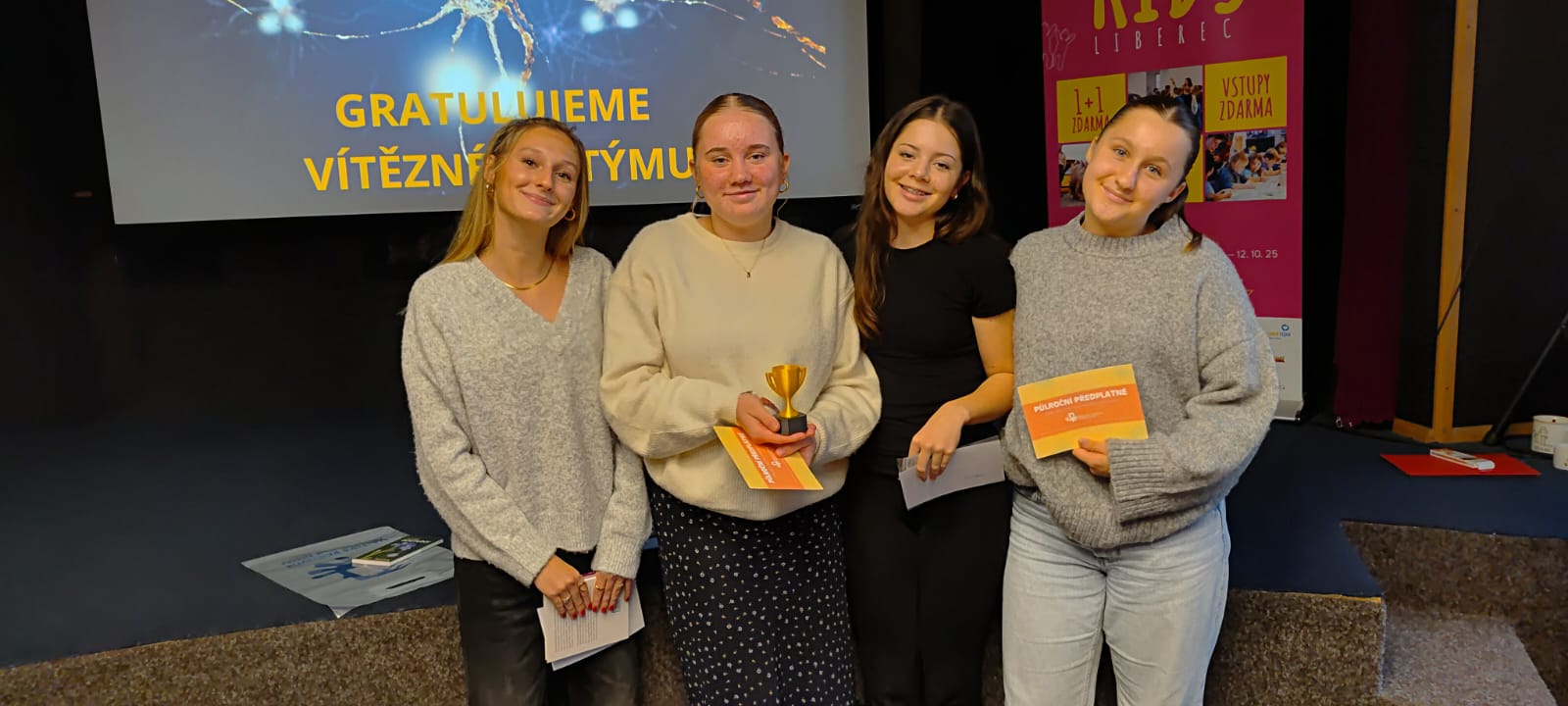 Zkraje října se třída 8. C vydala do Městské knihovny v Jablonci, kde byl pro ně připraven knihovnický kvíz. Ten se odehrál v audiovizuálním oddělení a byl zaměřen nejen na literaturu, ale třeba i osobnosti Jablonecka či všeobecné znalosti. Mezi šesticí týmů zvítězila čtveřice – Natálie Ulmanová, Lea Bienová, Kristýna Turínková a Julie Slachová.
