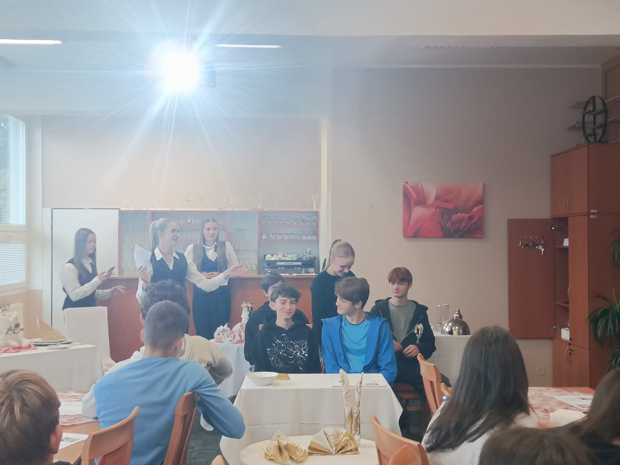 Na konci října se žáci devátých tříd vypravili do Střední školy gastronomie a služeb v Liberci, kde se v rámci programu s názvem Etiketa a základní pravidla stolování seznámili nejen s učebními a studijními obory vzdělávání, ale navíc viděli i praktickou ukázku stolování ve cvičné restauraci školy.