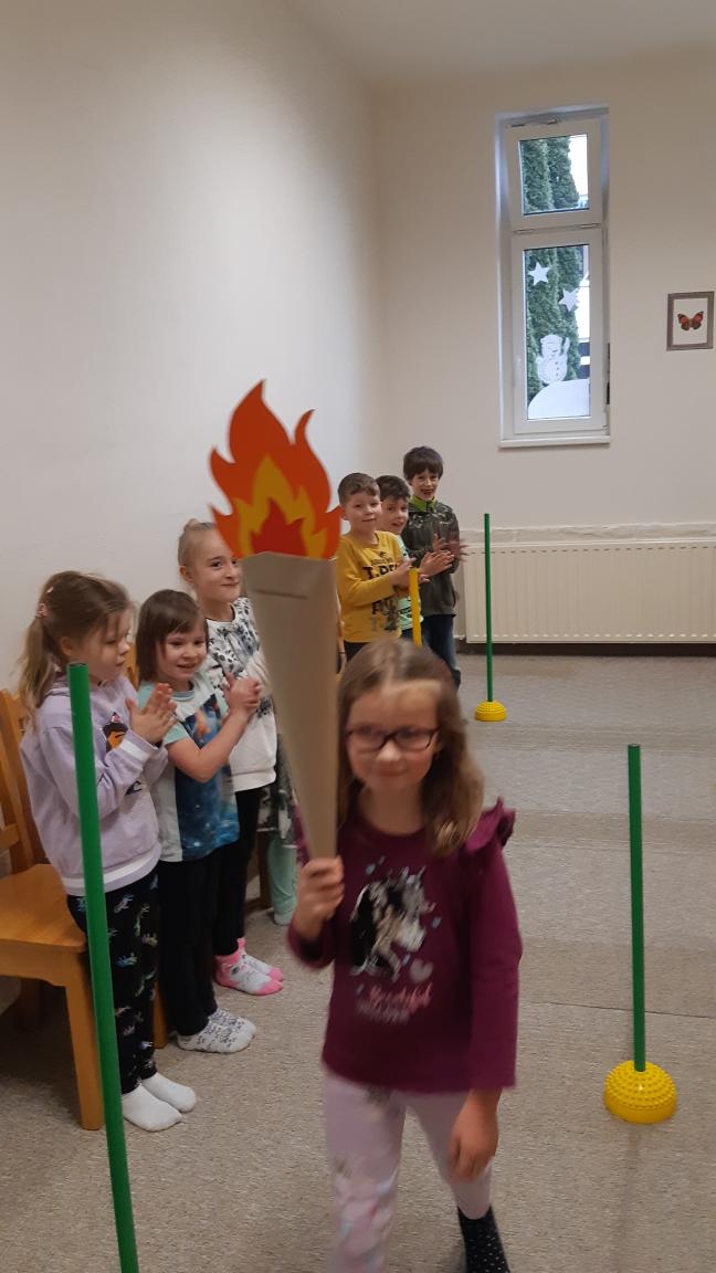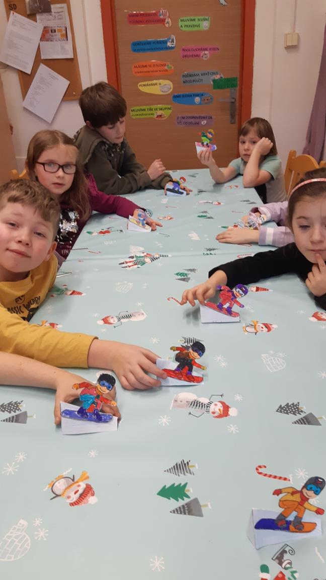 Děti ze 7.oddělení si zahrály na zimní olympiádu. Společně vytvořily maketu olympijského areálu, aktivně napodobily některé disciplíny, vyrobily si medaile a na závěr dostal každý sladkou odměnu. Na olympiádu si zahrály i děti z kroužku Šikulky. Vytvořily olympijskou pochodeň a plnily různé sportovní aktivity.