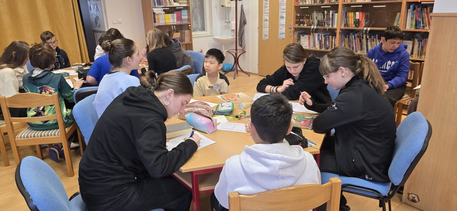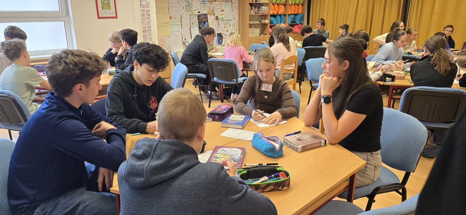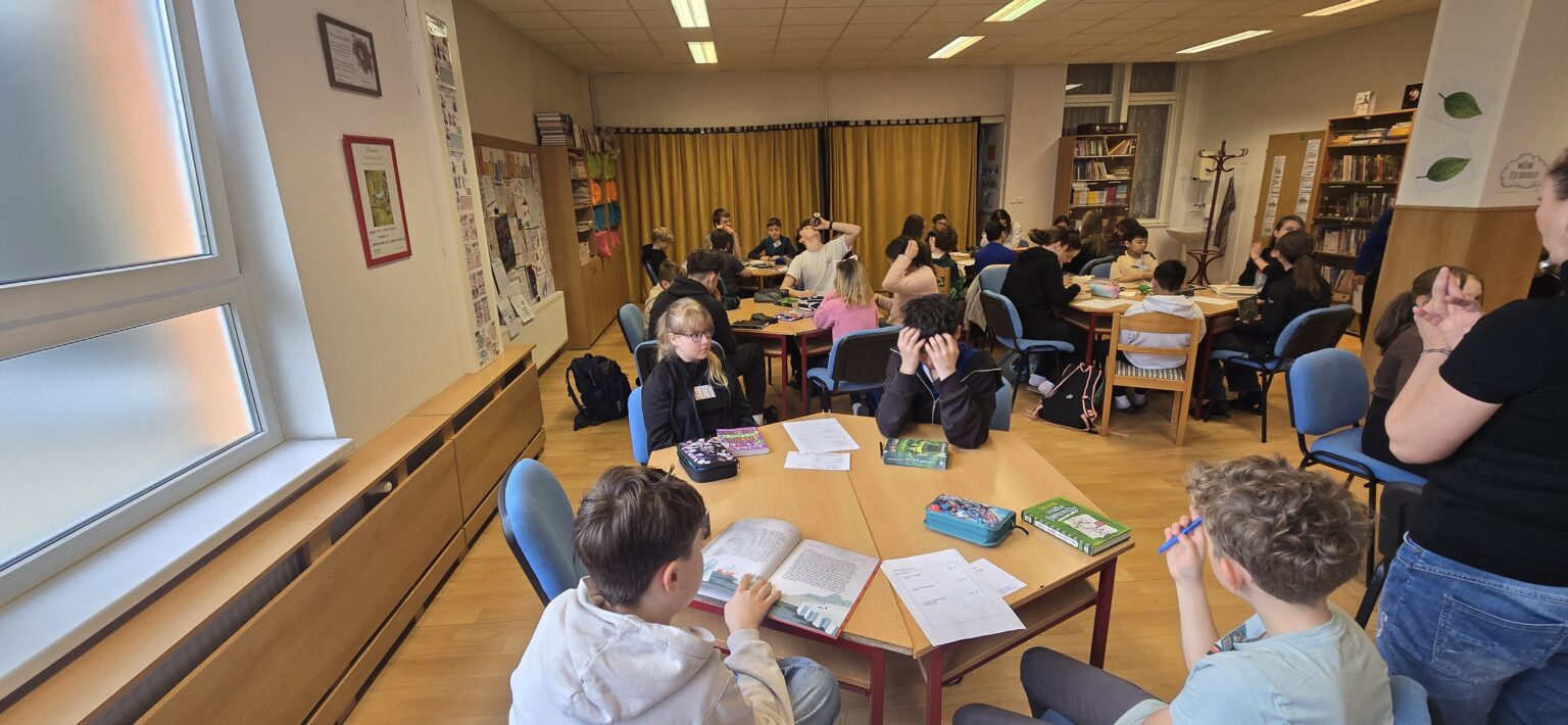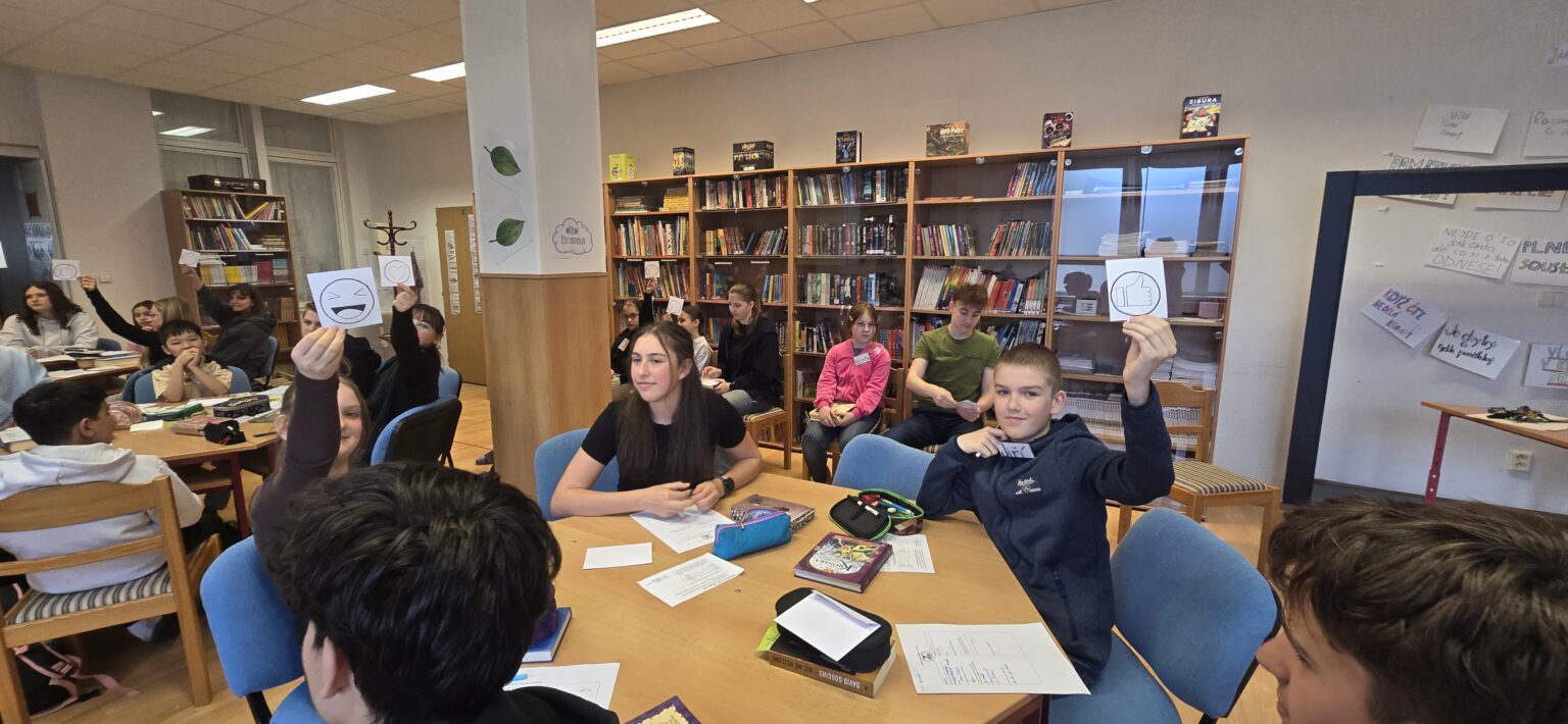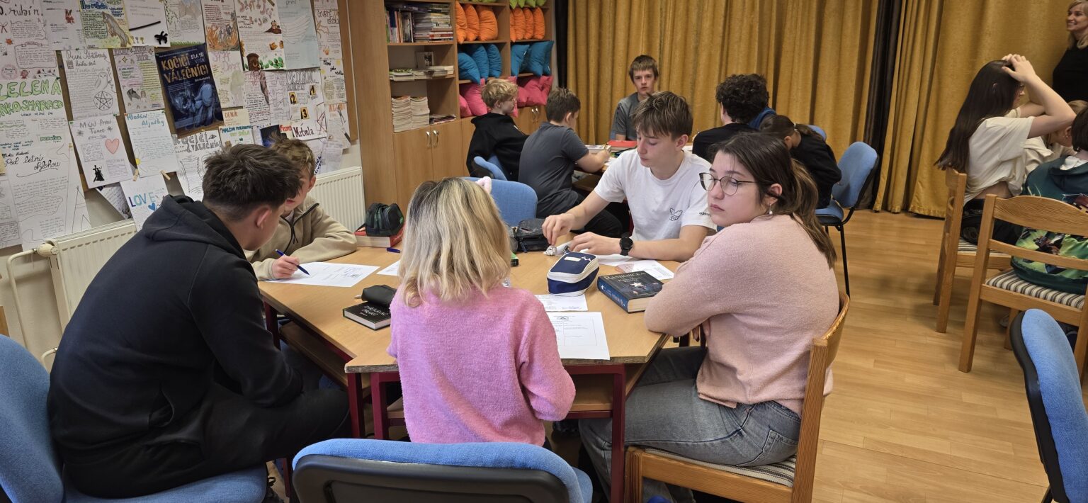 V pátek 10. 4. měli žáci z 8. A a 4. C společnou čtenářskou dílnu. Tématem byly vlastnosti literárních postav. Každý žák si donesl svou knihu, se kterou poté pracoval ve skupině. S nadsázkou se dá říct, že každý osmák „dostal“ svého čtvrťáka. Během dvou vyučovacích hodin jsme společně diskutovali, četli a snažili se najít, jaké vlastnosti mají naše literární postavy společné, zda by se spolu kamarádily a jak by si vzájemně třeba pomohly. Cílem této dílny bylo nejen čtení, ale i propojení žáků I. a II. stupně, aby si vyzkoušeli spolupráci.