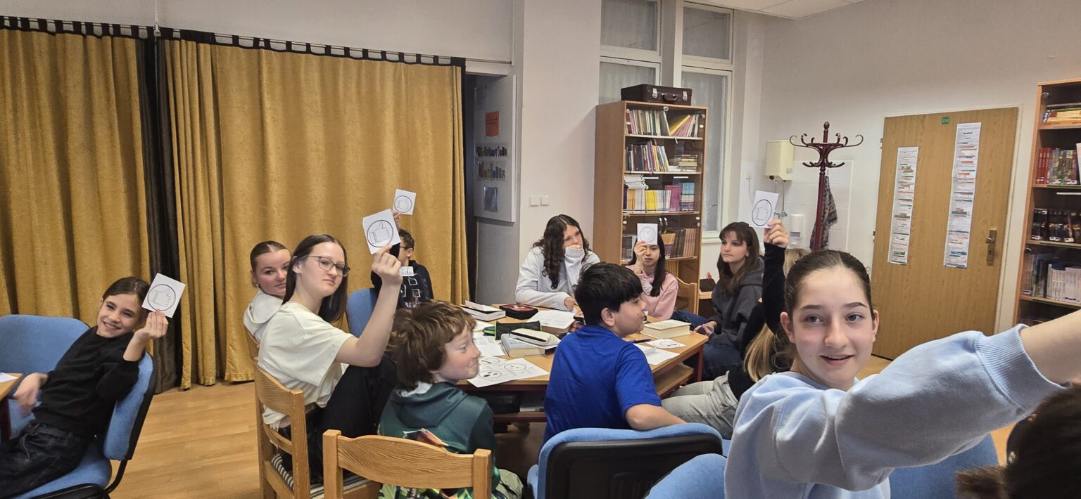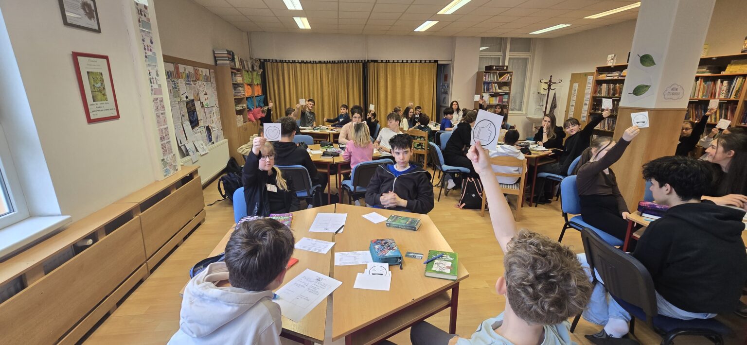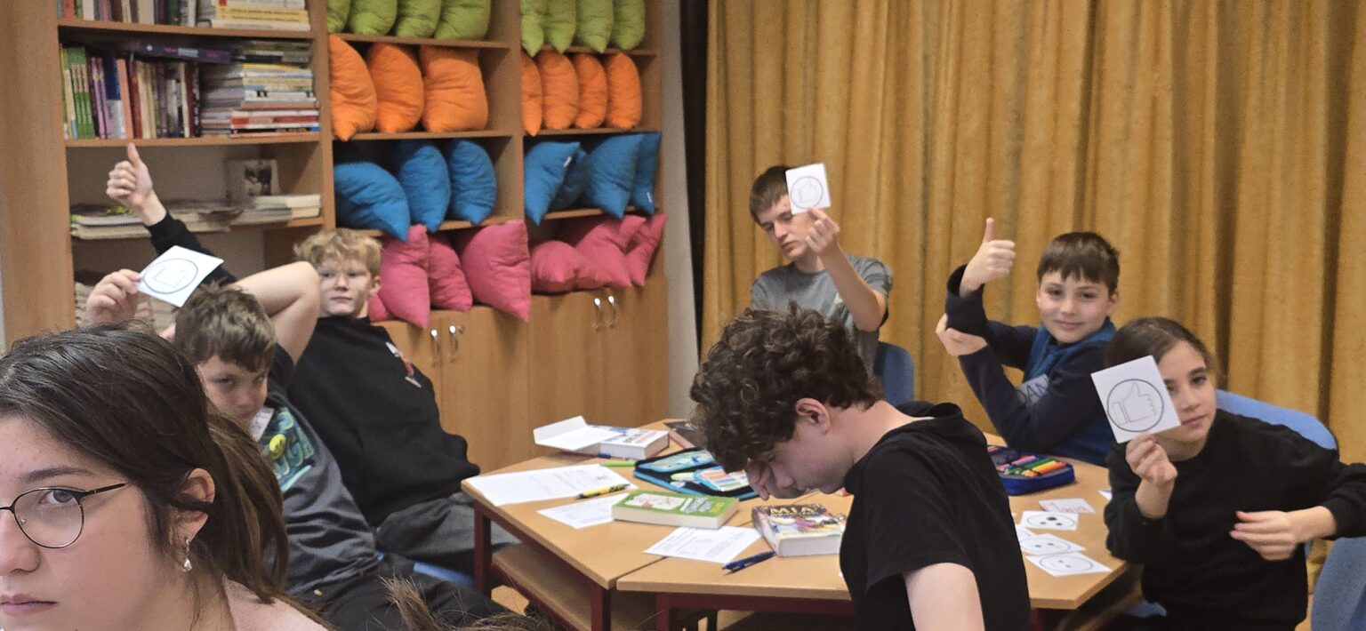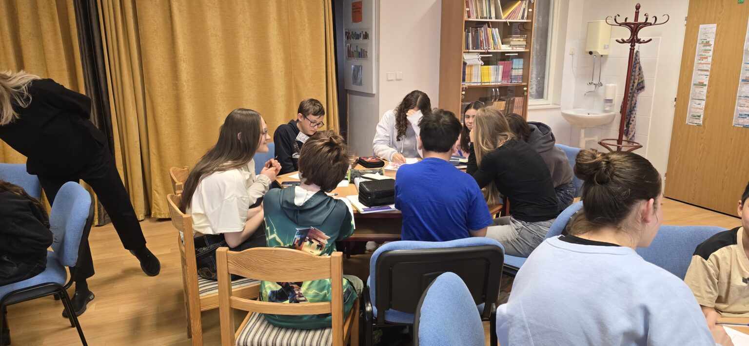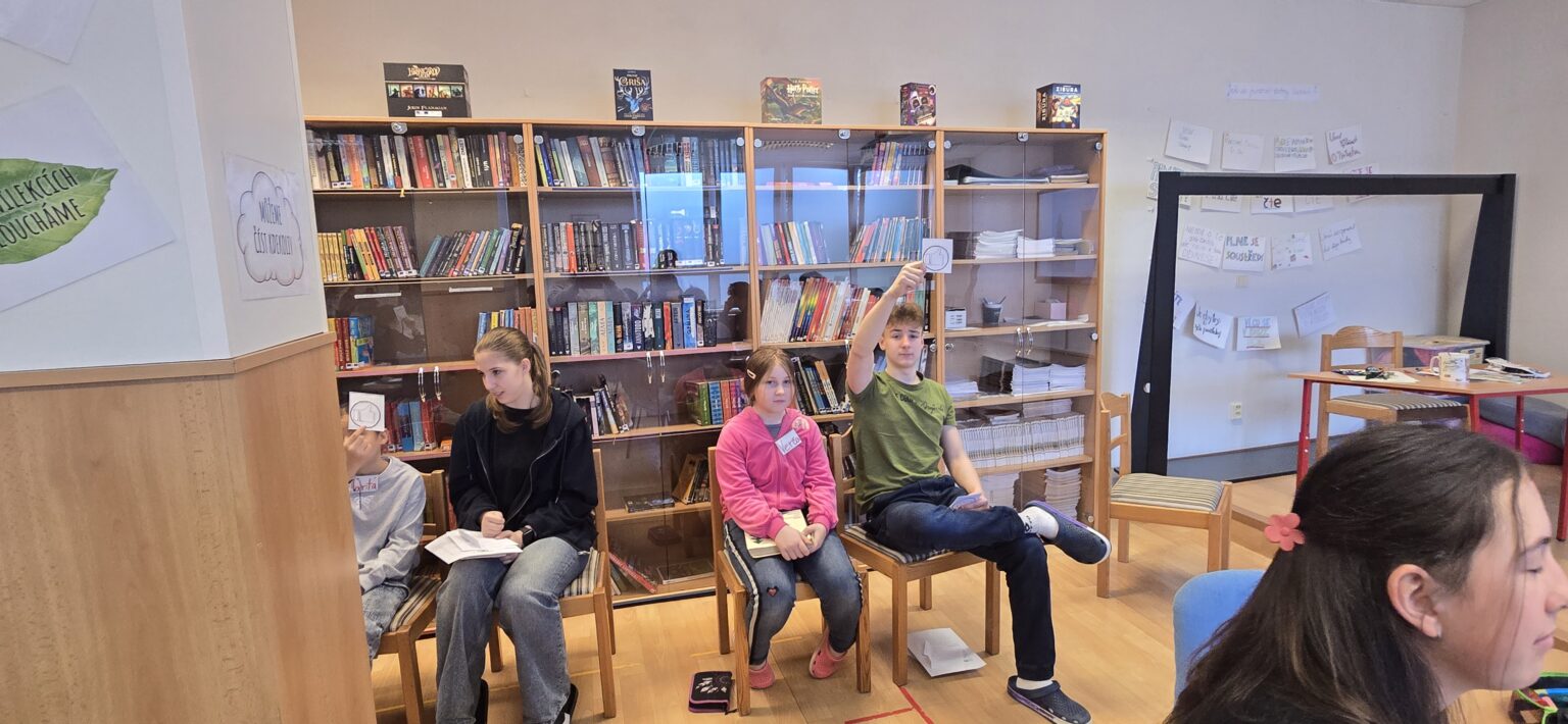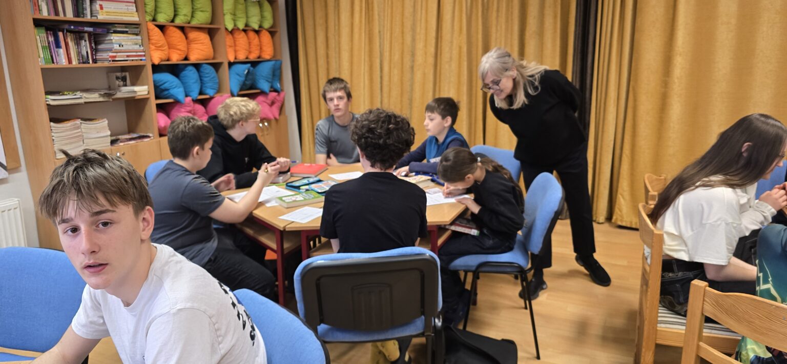 V pátek 10. 4. měli žáci z 8. A a 4. C společnou čtenářskou dílnu. Tématem byly vlastnosti literárních postav. Každý žák si donesl svou knihu, se kterou poté pracoval ve skupině. S nadsázkou se dá říct, že každý osmák „dostal“ svého čtvrťáka. Během dvou vyučovacích hodin jsme společně diskutovali, četli a snažili se najít, jaké vlastnosti mají naše literární postavy společné, zda by se spolu kamarádily a jak by si vzájemně třeba pomohly. Cílem této dílny bylo nejen čtení, ale i propojení žáků I. a II. stupně, aby si vyzkoušeli spolupráci.